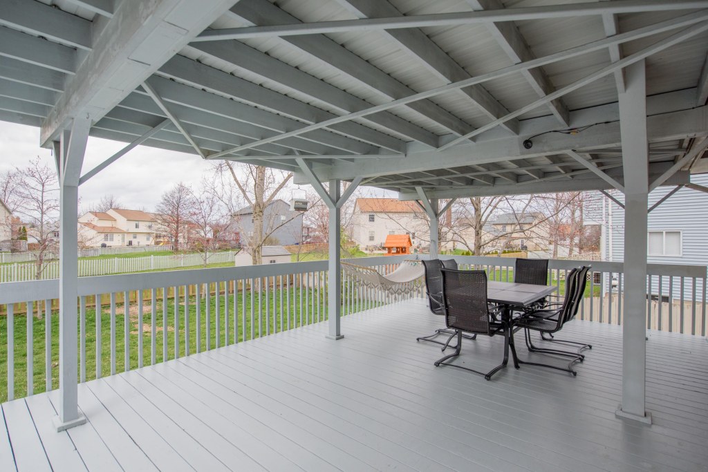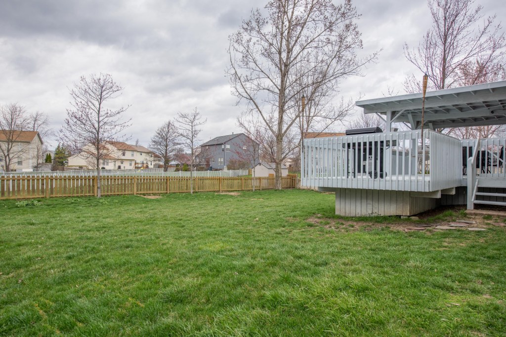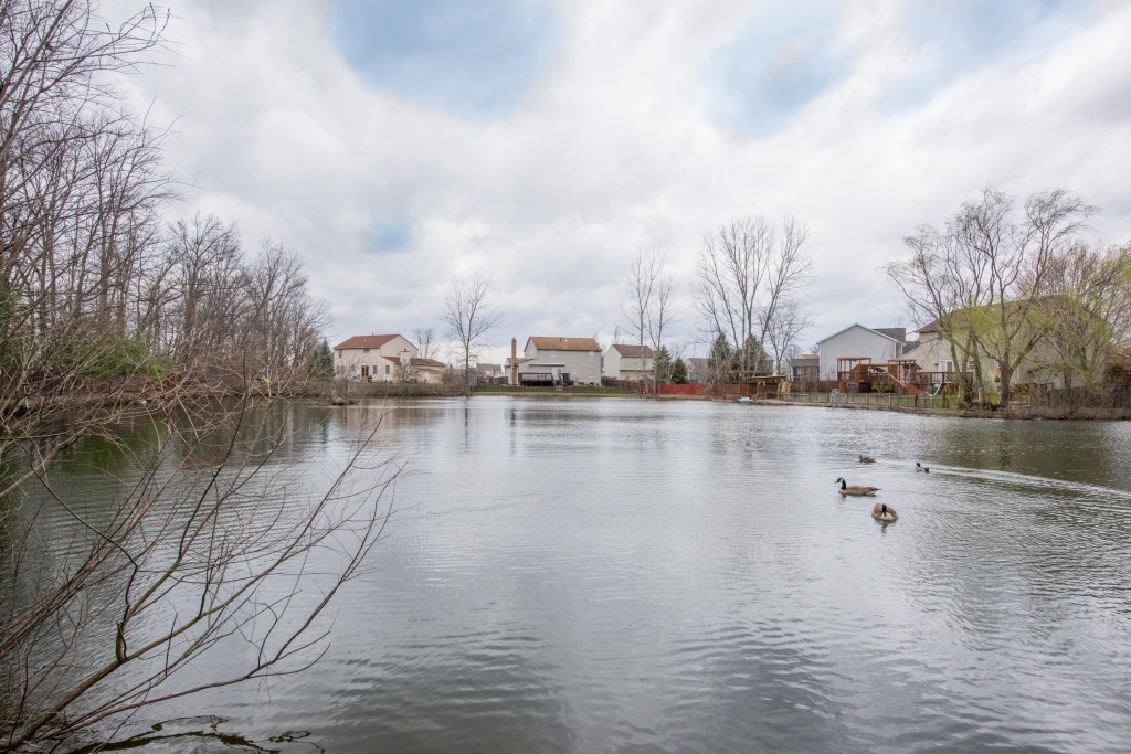 This beautiful 4 bedroom, 2.5 bath two-story in Hilliard features a full finished basement and large covered deck in the huge fenced back yard with a pond view.