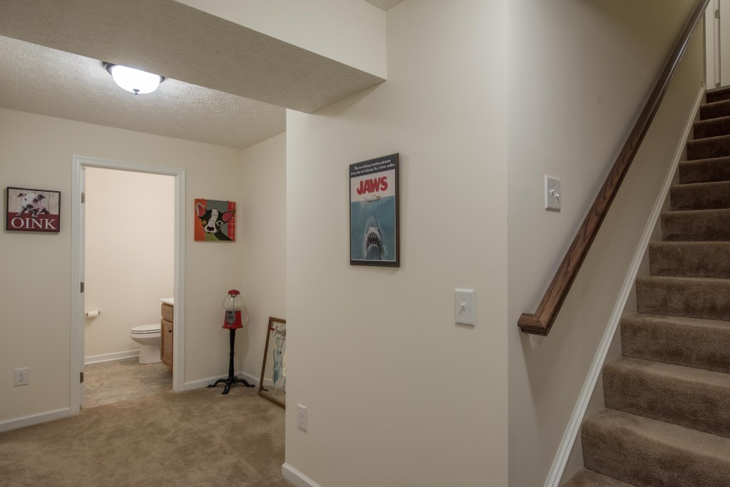 The lower level includes a large finished living space, another half bath, and two sizable unfinished rooms for storage or possibly a 4th bedroom.