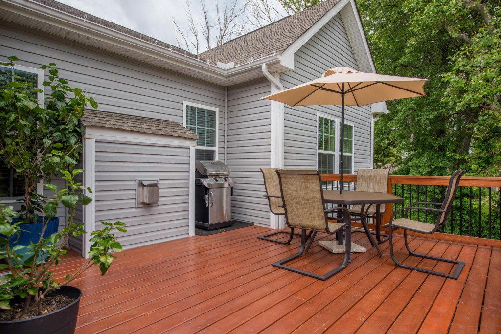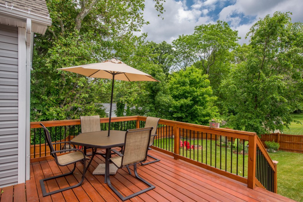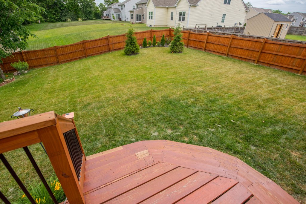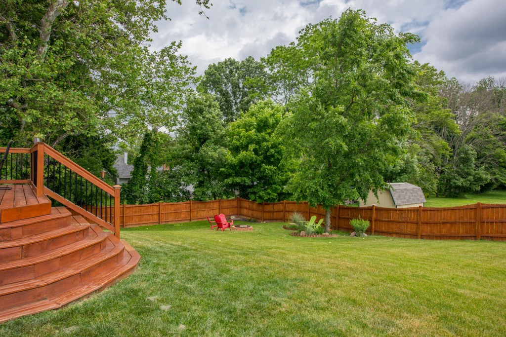 The huge back yard with custom deck and grand wood privacy fence is an entertainers dream with old growth trees on the left and no one ever directly behind.