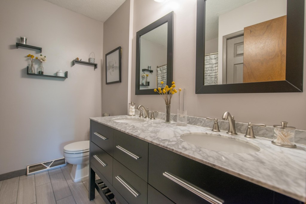 Both bathrooms were updated in 2016 with designer vanities, fixtures and gorgeous tile flooring.
