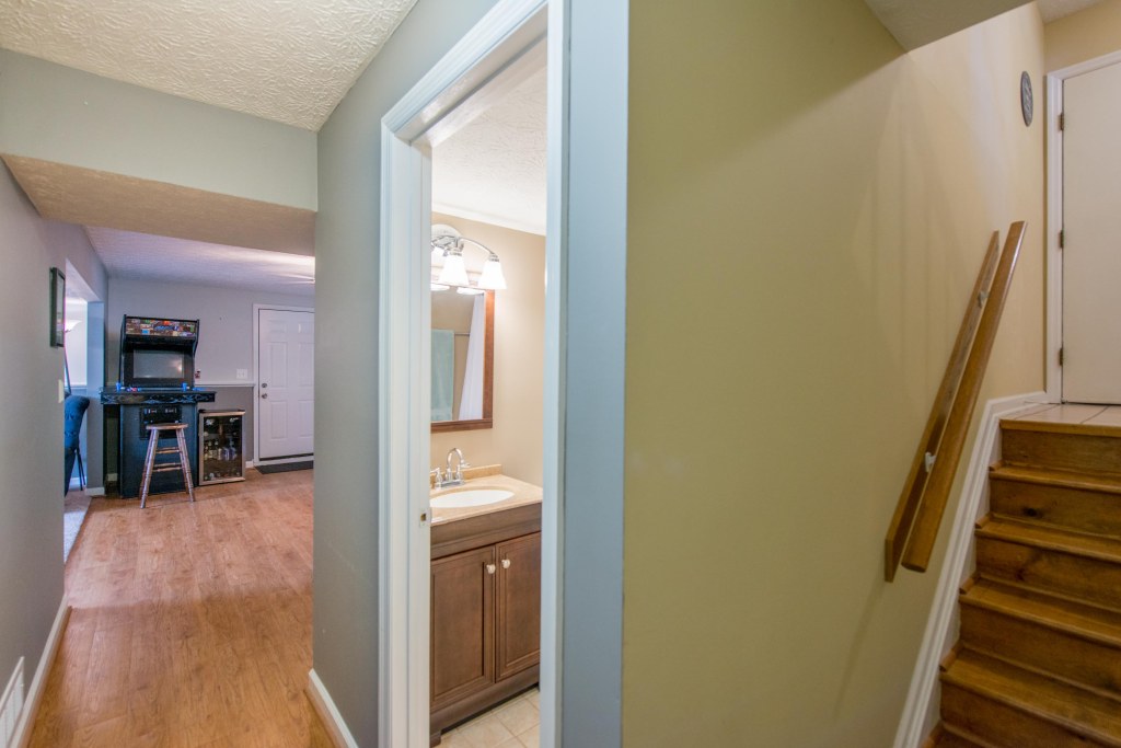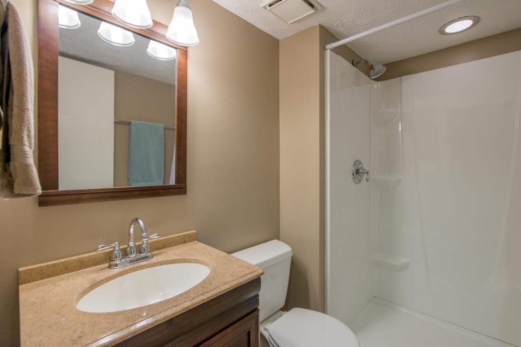 Both full baths are updated with tile flooring, custom vanities and light fixtures.