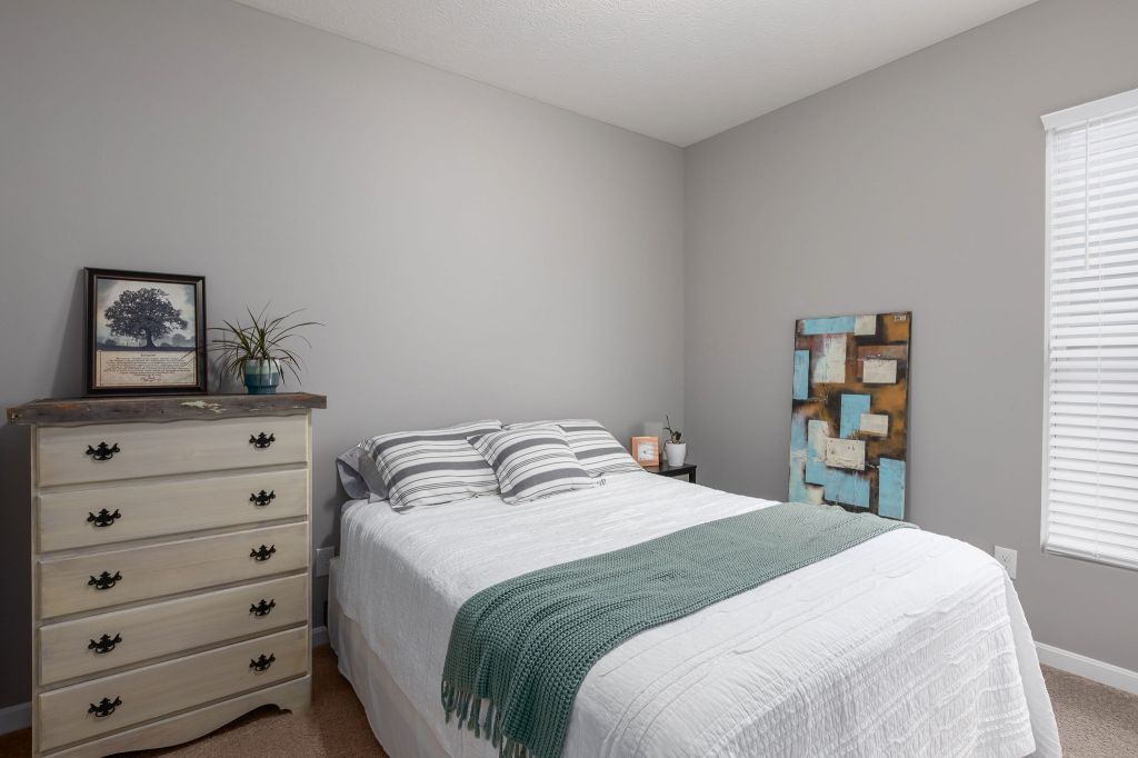 Additional features include wood laminate flooring in the kitchen, foyer, & hall, ceramic tile in the bath, & upgraded deluxe carpet pad.