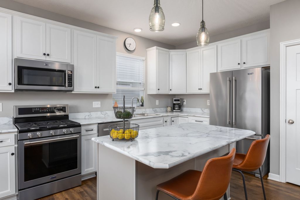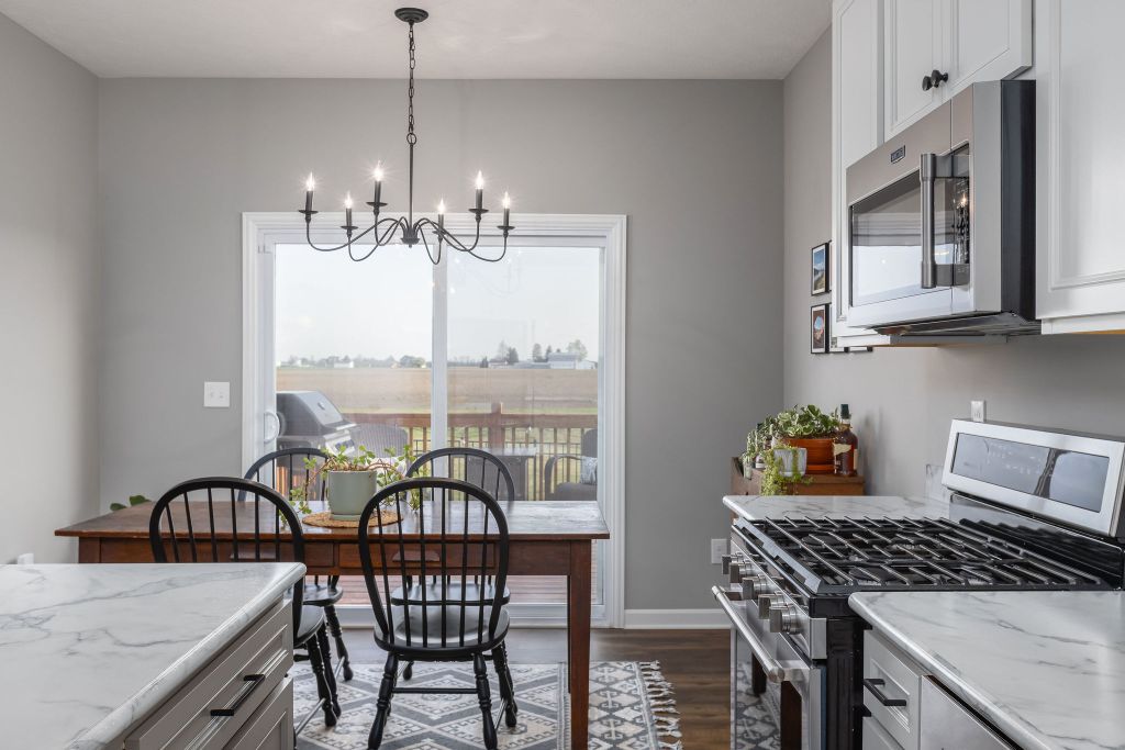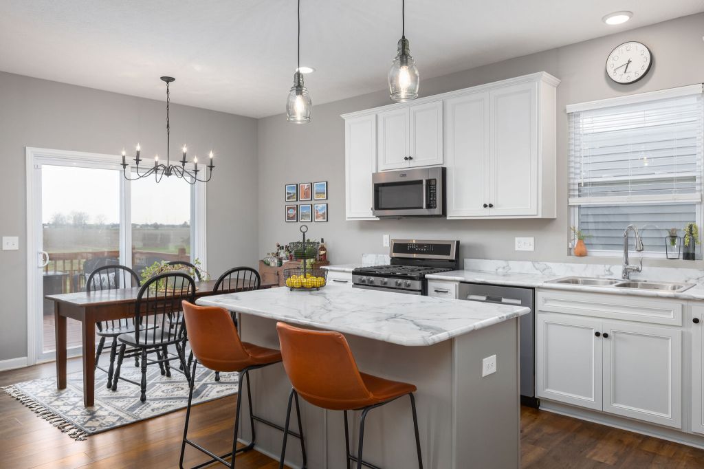 The kitchen is a chef’s dream, w/ 6′ rear extension to the breakfast area & an upgraded cabinet package w/ kitchen island. You’ll love the electric USB outlet, making it easy to charge your devices while you cook. The vented range hood & gas line to the range make cooking & entertaining a breeze.